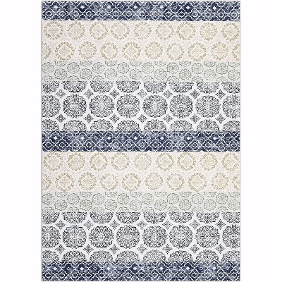 Machine Washable Area Rug with Non-Slip Backing, Large Modern Bordered Floor Cover, Stain-Resistant Low Pile Indoor Mat for Kitchen, Bedroom, Office