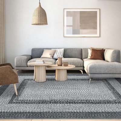 Machine Washable Area Rug with Non-Slip Backing, Large Modern Bordered Floor Cover, Stain-Resistant Low Pile Indoor Mat for Kitchen, Bedroom, Office