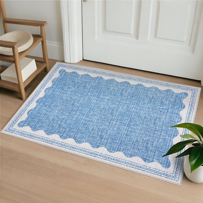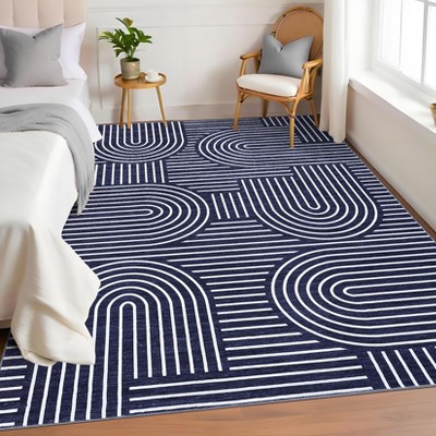 Machine Washable Area Rug with Rubber Backing Low Pile Modern Bordered Foldable Rugs