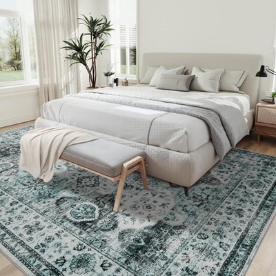 Machine Washable Area Rug, Non-Slip Rug for Living Room and BedroomProduct Description:Infuse your home with character and effortless style using this Vintage Boho Rug. It features a beautifully distressed floral pattern that delivers timeless bohemian charm, crafted with modern-day practicality in mind. The ultra-thin, needle-punched polyester construction creates a sleek surface that resists dust and pet hair, while the complete machine washability ensures the ultimate in easy cleaning. Designed for seamless integration into your home, its grippy dot backing provides reliable stability, making it a perfect, low-maintenance foundation for your living room, bedroom, or kitchen.Key Features:• Effortless Machine Washable Cleaning: Enjoy the ultimate convenience of a rug that is completely machine washable. Designed for easy deep cleaning, it can be tossed in your home washing machine using cold water. The high-quality, fade-resistant dyes and non-shedding fibers ensure the vibrant vintage design stays beautiful, typically requiring a full wash only every 3-6 months with simple spot cleaning in between.• Stable Grippy Dot Backing: Achieve reliable placement with the rug's practical non-slip backing. The textured fabric base is equipped with grippy dots that help prevent the rug from shifting on most floor surfaces. For added security in high-traffic areas or on slick floors, you can easily anchor the edges with furniture. This design ensures the rug lays flat without curling for a polished look.• Ultra-Thin & Low-Maintenance Profile: Experience a rug designed for modern, easy living. The needle-punched construction creates a sleek, flat surface that is thin enough to slide effortlessly under doors and furniture. This low-profile design not only prevents tripping hazards but also makes the rug robot-vacuum friendly, allowing for hassle-free daily cleaning that traps no dust or crumbs.• Vintage Boho Floral Design: Elevate your decor with a rug that boasts artistic charm. The distressed traditional floral pattern, rendered in rich, earthy tones, creates a timeless bohemian look. The artisanal motifs and versatile color palette add a pop of character and warmth, seamlessly complementing both neutral and bold decor styles in your living room, bedroom, or entryway.• Easy Setup & Crease Removal: Get a perfectly flat rug with minimal effort. Any minor folds from packaging will naturally disappear within a few days of unrolling and use. You can speed up this process by rolling the rug backward or applying gentle weight. This ensures your rug maintains a smooth, polished appearance over time with regular use.