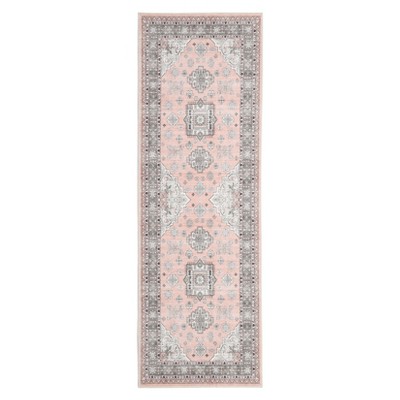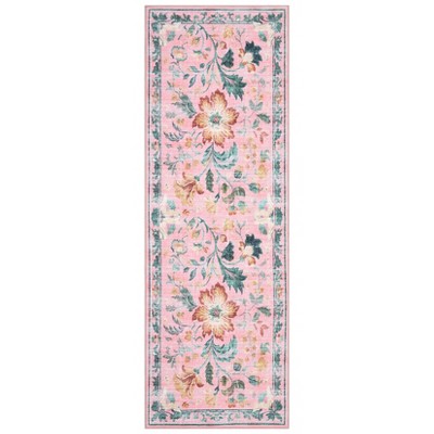 Machine Washable Boho Runner Rugs, Pink 2'x6' Non Slip Floral Vintage Low Pile Long Rug Carpet for Living Room