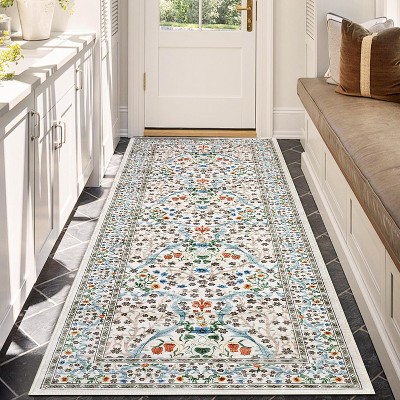 Machine Washable Floral Printed Botanical Rug,Non Slip Low Pile Rug Soft Floor Cover,Foldable Indoor Carpet for Living Room Bedroom Dorm,Black