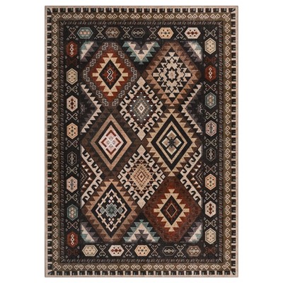Machine Washable Geometric Area Rug, Non-Slip Low Pile Faux Wool Western Pattern Easy Care Carpet for Living Room Bedroom, Blue