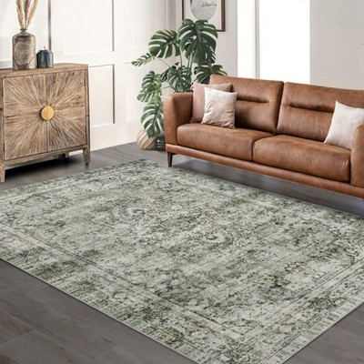 Machine Washable Low-Pile Vintage Rugs with Non-Shedding Thick and Soft Durable Easy to Clean Green