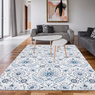 Modern Flower Fade-Resistant Bedroom Floral Accent Carpet Non-Slip Contemporary Boho Rug