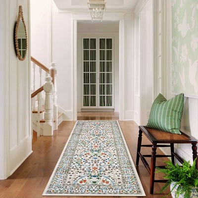 Machine Washable Modern Floral Bordered Non Slip Area Rug for Living Room Soft Low Pile Indoor Aesthetic Carpet for Bedroom Dining Room Office