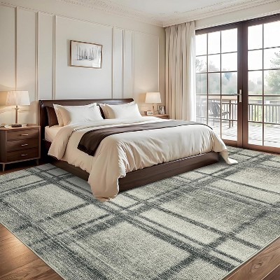 Machine Washable Modern Plaid Area Rug Soft Non Slip Rug Indoor Decorative Low Pile Foldable Carpet