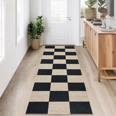 Machine Washable Rug 5x7 Modern Checkered Bordered Area Rug Non Slip Throw Carpet Non Shedding Low Pile Carpet