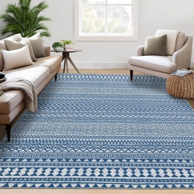 Machine Washable Rug Modern Abstract Carpet Non Slip Geometric Throw Rug Foldable Low Pile Ultra Soft Distressed Accent Rug for Living&Dining Room