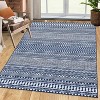 With a stylish and neutral Moroccan-inspired design, this 4' x 6' navy blue area rug adds a modern and chic touch to your space. Its versatile look makes it easy to coordinate with other decor, and it's sure to enhance the overall aesthetic of your home. Our moroccan geometric rug has an anti-slip bottom, which means that it will stay securely in place and prevent any accidents or slips. Our carpet is easily cleaned and maintained. You can wash the rugs in a regular washing machine, eliminating the need for special cleaning supplies or equipment.