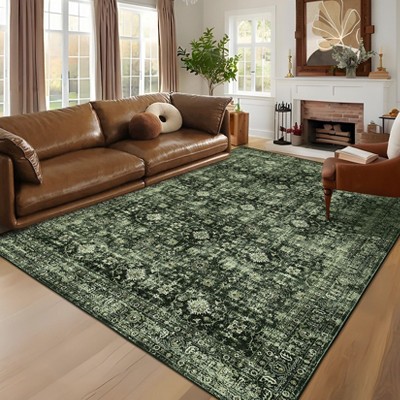 Machine Washable Rug Ultra Thin Area Rug Non Slip Vintage Rug Foldable Stain Resistant Rugs for Living Room Bedroom Indoor Low Pile Carpet