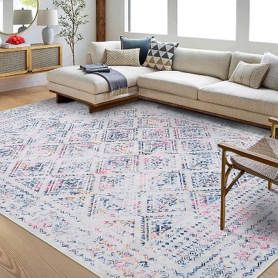 Machine Washable Vintage Floral Rug - Low Pile Non-Slip & Stain Resistant Carpet , Dusty Palette 9x12