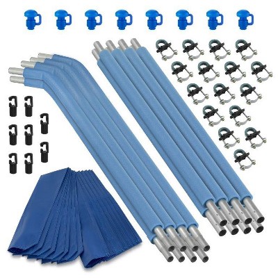 Accessories Included: Our heavy-duty trampoline enclosure pole set includes 8 heavy duty upper and lower poles (for top ring enclosure system), with foam sleeves, and pole sleeve protectors, 16 u-bolts (2 u-bolts per pole) and a set of 8 pole caps.