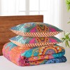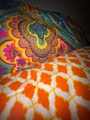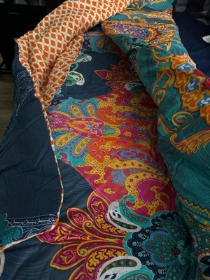 The Mackenzie Comforter Set by Levtex Home is bohemian. Offered in teal, orange, yellow, green and blue, this design will immediately transform your bedroom. Made with a sfot, luxurious cotton, this comforter set features a unique, bright boho. It has a teal, orange, yellow, green and blue on the front and a solid cream 100% cotton on the reverse. It is filled with a hypoallergenic 100% polyester filler. The Mackenzie Comforter Set is machine washable and includes the comforter and pillow cases. Enjoy this for years to come!