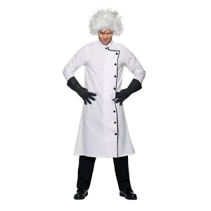 - INCLUDES: 100% Polyester costume includes white lab coat, wig and black gloves.