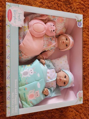 Madame Alexander 14" Small Wonders Sleep Set is really great. Features two adorable dresses up baby dolls one in blue and one in pink. Both have adorable little outfits, sleeping bags, and their own little belongings. Very detailed, very sturdy dolls for rough play, my daughter has had so much fun playing with these two dolls and their accessories! I would definitely recommend this doll set!
