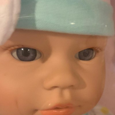 This baby doll has purple eyes, not blue. The picture online is misleading. I wanted a baby doll with blue eyes to match my daughter’s eyes. Other than that it seems like good quality.