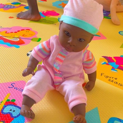 - Adorable realistic 14” baby with deep skin, brown eyes.