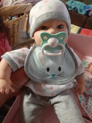 - Each doll includes their own special outfit with headwear, a bib, a bottle and a pacifier.
