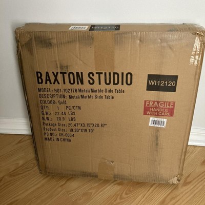 Maddock Metal End Table with Marble Top: No Assembly, Round Side Table - Baxton Studio
