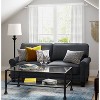 Make an understated design statement in your living room with this sleek, contemporary coffee table. Crafted with a sturdy metal frame and two shatter-resistant tempered glass shelves, this coffee table provides ample space to serve snacks or display books and potted plants. Its open-tiered design gives a minimalist look, while its distressed metal frame adds weathered charm.