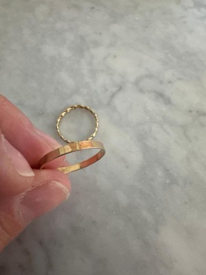 I love the dainty design of this ring! It pairs really well with my birthstone ring. This ring is quite as durable as my other one, as it has some scratches in the gold that my other rings don’t have and I wear them all on the same finger. I love the look this ring gives my stack!