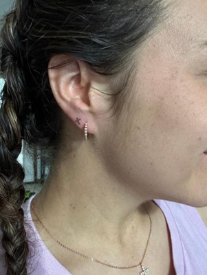 I like the Poppy hoop earrings and ring, but these are next level. Small but sparkly. I got these with the matching necklace. It's a beautiful set, and the cz's sparkle brightly.