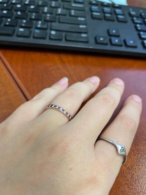 This ring is perfect to stand in for my wedding band while I have a little one. My wedding ring kept catching on things and I ended up losing a diamond. I found this one (which is my husband’s birthstone) and loved it. I have one with my birthstone on the way!