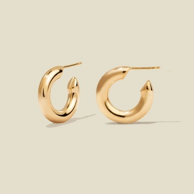 Bask in your boldness with these glossy hoops made for all of life’s little moments, available in 14mm and 20mm in both silver and gold. With confident radiance, they catch the light as you move through your day, effortlessly adding a touch of elegance to any outfit.