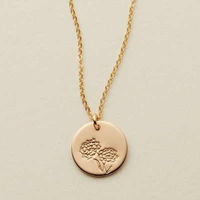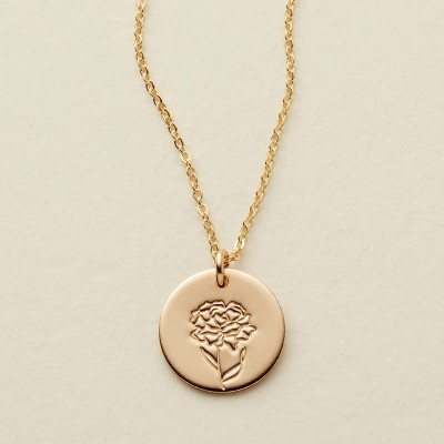 You already know the way. No matter where you go, carry this symbol of intuition close to your heart. Available in gold filled, rose gold filled, or sterling silver, this delicate disc is customized with a hand-drawn carnation stamp.