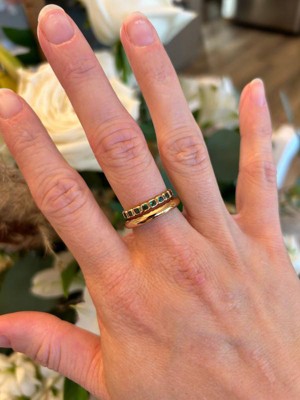 This stacking ring is an amazing value. Good quality, very comfortable and light weight, and pairs well with many stacks. Love the emerald and gold they compliment each other so well!