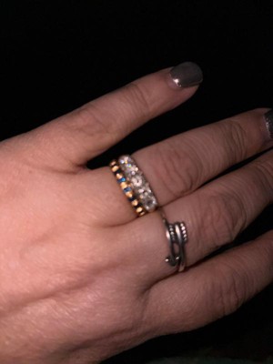 I think the ring is beautiful but the stones are very small compered to the pictures of the ring advertisement. I looked at the stack rings and at this one and opted for this one because the stones looked much bigger in the pictures of this ring verses the stack ring.