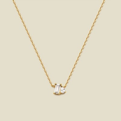 Home is wherever I’m with you- and this necklace is a stunning reminder that you can carry a piece of home anywhere you go. Fixed on a dainty chain, a single emerald CZ and pear CZ are set together in a shimmering tribute to the greatest love story of them all- your own.