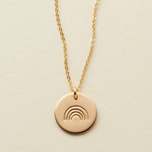 Pay tribute to the elements that lift and energize you with the Wonder Disc Necklace. This gold filled or sterling silver oval can be customized with a stamp that invokes the beauty of nature. Choose a bright sun for a reminder of fresh starts and light to come; choose a wave for a reminder that in the waves of change you find your direction; or choose a rainbow for a reminder that there is joy ahead and love to be found.