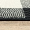 A: The rug features a buffalo check pattern in black and white.
