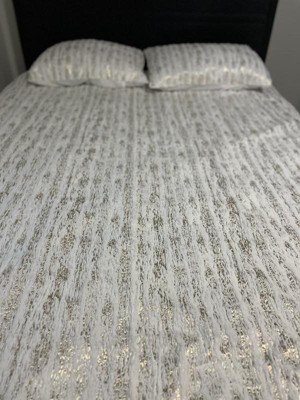 [This review was collected as part of a promotion.] Oh wow! This covet set is very soft. And with the metallic design, it certainly catches your attention. It almost look to good to put on my bed. It's very sophisticated looking.