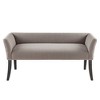 Accent your home with the simple elegance of the Madera Accent Bench. Upholstered in the fabric, this bench features a low back and flared arms that create a sleek and sophisticated look. A nailhead trim adds elegant accent, while the light wood finish complements the upholstery. Perfect for your bedroom or living room, this upholstered bench provides a chic update to your home decor. Assembly required.