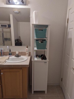 RiverRidge Home Madison Single Door Tall Bathroom Cabinet Storage Organizer with Open and Adjustable Shelves White