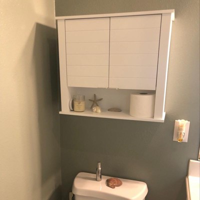 The RiverRidge Madison Two-Door Wall Cabinet is a stylish and functional bathroom medicine cabinet or over the toilet cabinet solution. Our versatile bathroom cabinet over the toilet provides storage space with adjustable shelves behind the doors and an open shelf below. The modern design with horizontal grooves and flat handles complement any decor, making it an ideal bathroom cabinet choice. Our toilet storage cabinet is designed to store hand towels and toiletries. The adjustable shelves allow for customizable bathroom wall storage, ensuring your items are organized and accessible. With its sleek design, our hand towel cabinet for the bathroom enhances both functionality and style. Its modern design also makes it suitable as a kitchen wall cabinet or storage solution for any room. The easy-to-mount design with included hardware and template allows for secure wall installation. With its durable MDF construction and painted finish, these wall cabinets are built to last.