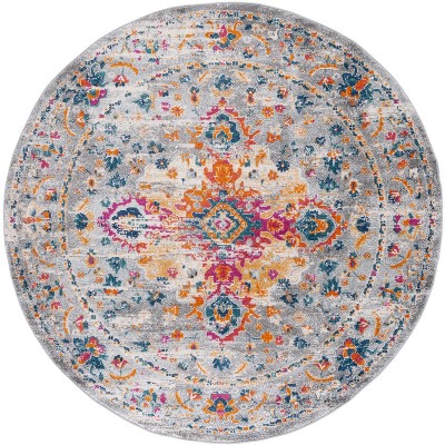 Madison MAD122 Power Loomed Indoor Area Rug - Light Grey/Fuchsia - 6'7" Round - Safavieh