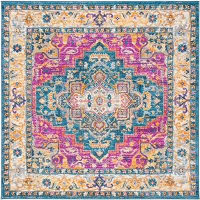Madison 200 MAD252 Power Loomed Indoor Area Rug - Navy/Turquoise - 6'7"x6'7" - Safavieh