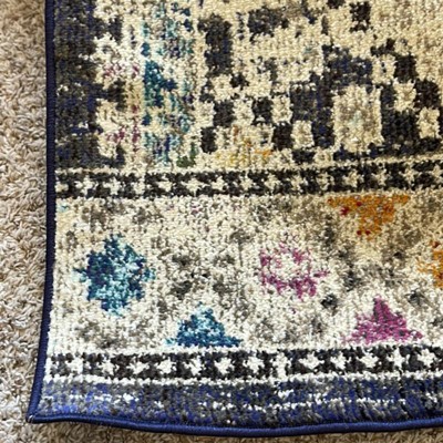 Chose this rug because it was neutral with pops of color which I was looking for. The colors are a bit more muted than in the online image but that didn't bother me. What did bother me however, is that the rug is 7.5'X10" NOT 8"X10"! I'm quite disappointed since I needed those 5 extra inches for the front legs of both my couches to sit on the rug. I gave it three stars because of this. I'll try rearranging but it most likely will have to go back.