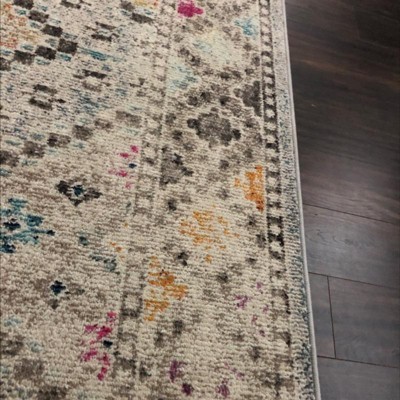 Chose this rug because it was neutral with pops of color which I was looking for. The colors are a bit more muted than in the online image but that didn't bother me. What did bother me however, is that the rug is 7.5'X10" NOT 8"X10"! I'm quite disappointed since I needed those 5 extra inches for the front legs of both my couches to sit on the rug. I gave it three stars because of this. I'll try rearranging but it most likely will have to go back.