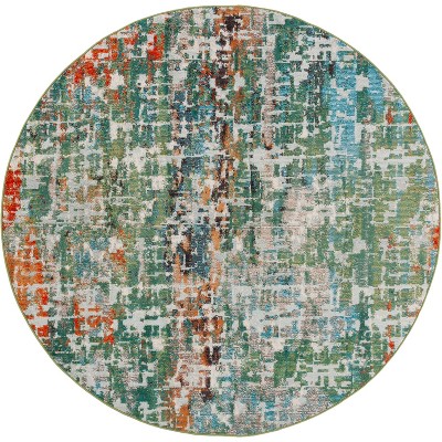 Madison MAD422 Non-Shedding Power Loomed Indoor Area Rug - Blue/Orange - 6'7" Round - Safavieh