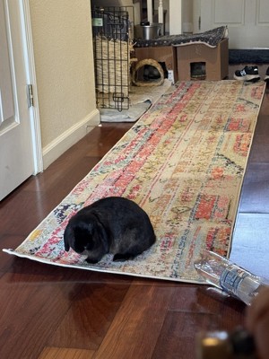 I just got this carpet, so please excuse the corners. I chose the 10-foot runner and love the vibrant colors. It’s a bit on the thinner side, but it's still nice.