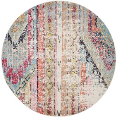 With a modest pile height of 3/8", this round-shaped rug boasts a comfortable, inviting surface that complements its aesthetic appeal. Crafted in Turkey, a country known for its rich tradition in rug-making, this piece reflects a deep heritage of craftsmanship.