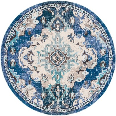 Madison MAD468 Non-Shedding Power Loomed Indoor Area Rug - Navy/Ivory - 6'7" Round - Safavieh