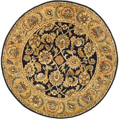 It is a great rug! However it is not black and gold like described. The trim stitch is definitely a royal navy blue and very prominent in the sunlight. The Actual dark on the carpet is a purple hue. The carpet is great quality otherwise