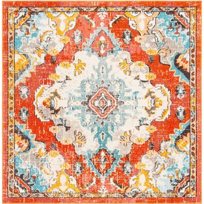 Madison MAD473 Non-Shedding Power Loomed Indoor Area Rug - Orange/Teal - 6'7"x6'7" - Safavieh