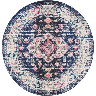 Madison MAD484 Power Loomed Indoor Area Rug - Navy/Ivory - 6'7" Round - Safavieh